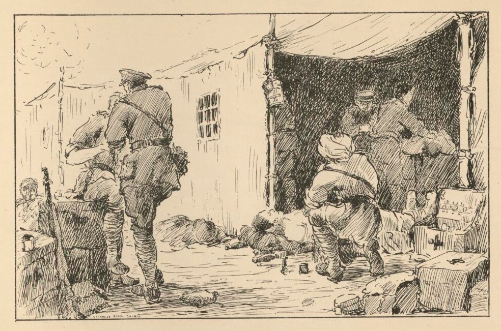 Extract from "Crusading at Anzac", "The Field Hospital". Sketch by Ellis Silas