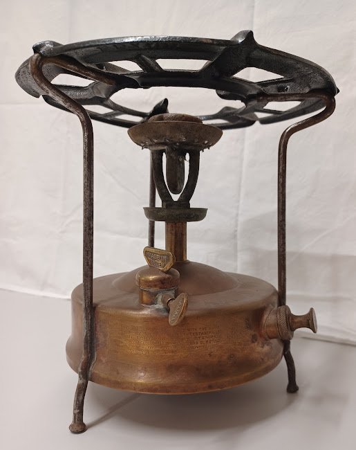 "Radius No.5 S:or" refers to a vintage, brass, kerosene-fueled camping stove made in Sweden.