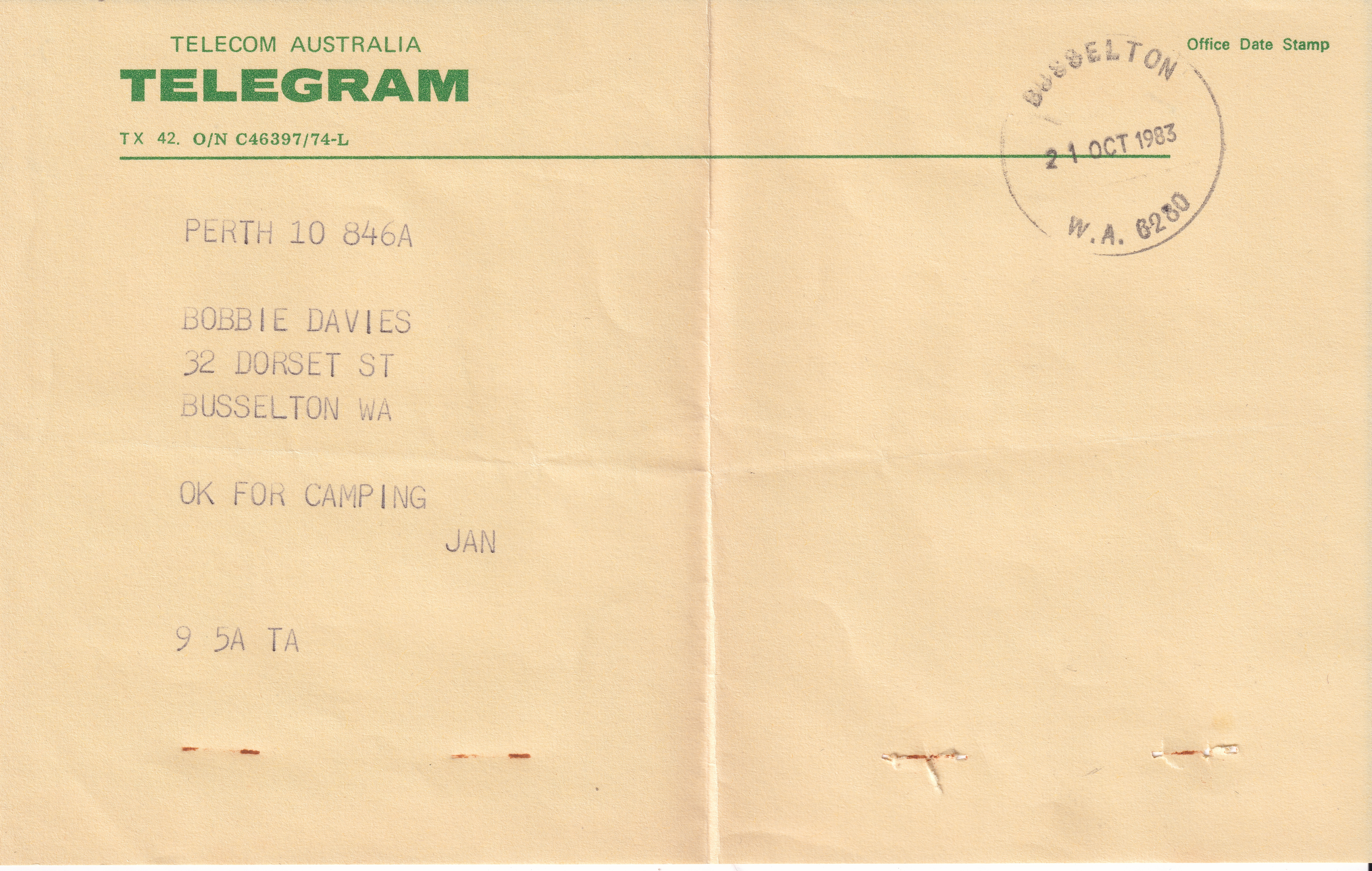 Office Date Stamp: Busselton WA 6280. 21 October 1983