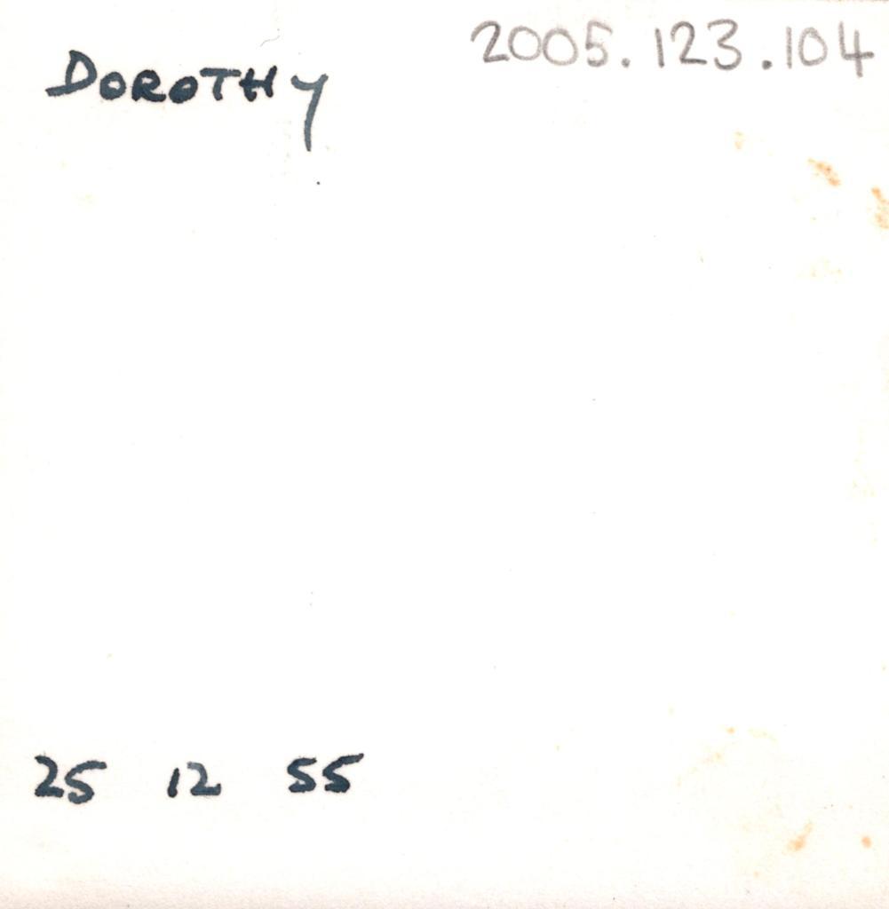 Reverse: Written in thin black marker, 'DOROTHY', '25 12 55'.