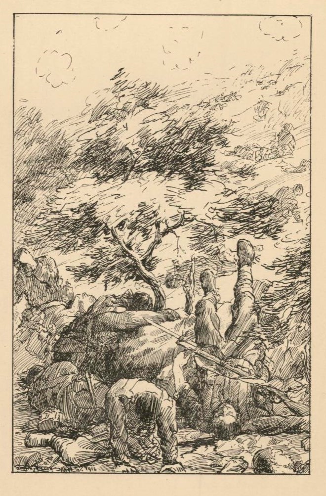 Extract from "Crusading at Anzac", "Dawn." Sketch by Ellis Silas