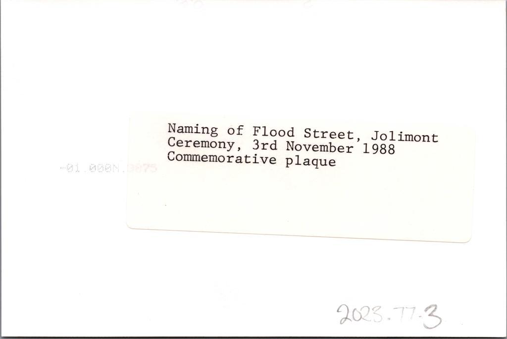 PHOTOGRAPH: 'NAMING OF FLOOD STREET, JOLIMONT', 1988
