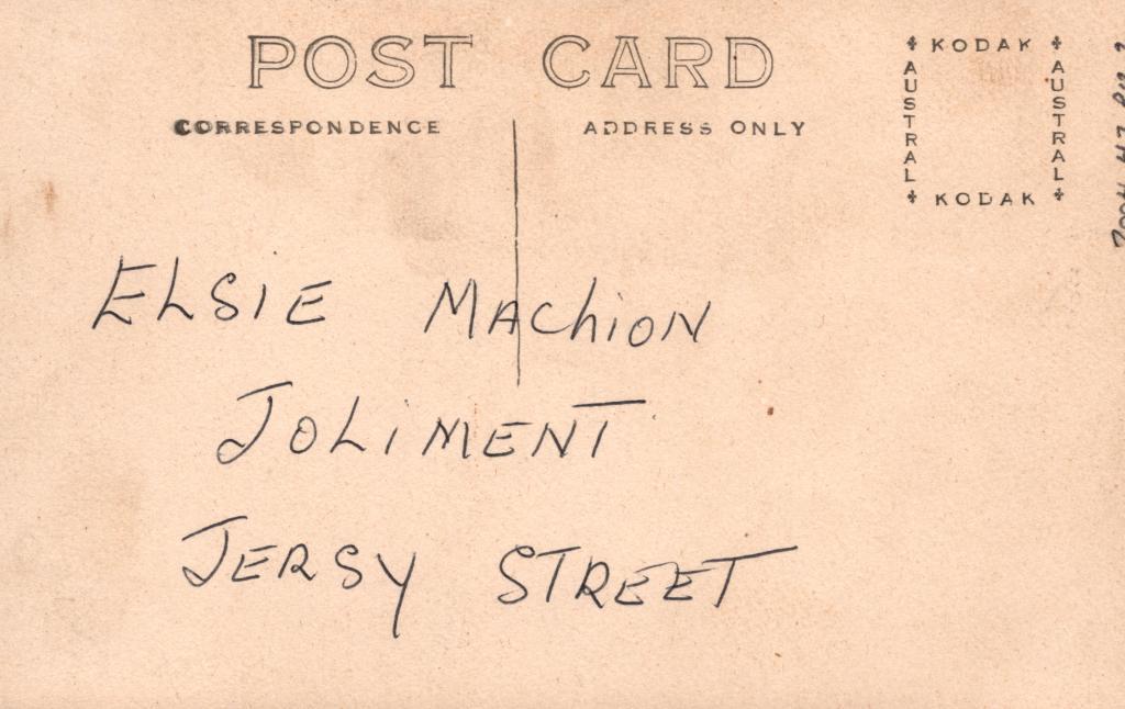 Reverse: Written in black pen 'ELSIE MACHION JOLIMENT (Jolimont) JERSY STREET'