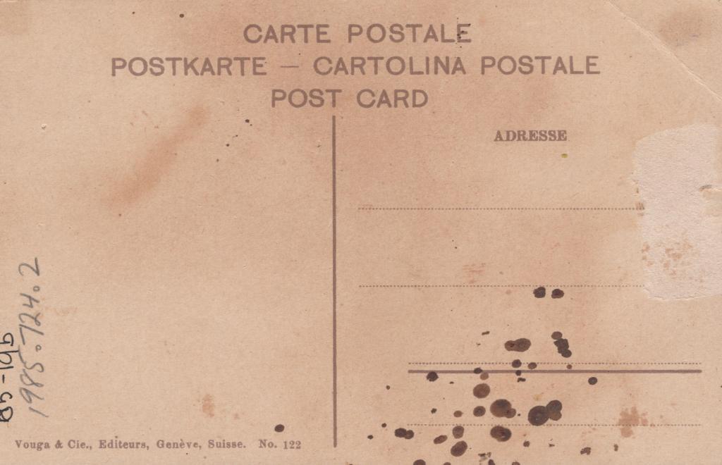 Reverse: Written at bottom right 'E. Vanya'. Vouga and Cie, Editeurs, Geneve, Suisse. No. 122.
