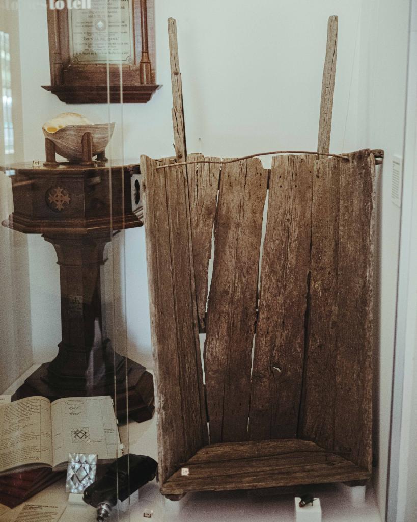 This handmade wooden wheelbarrow was used by a local Subiaco family as a practical household tool for transporting heavy or awkward items.