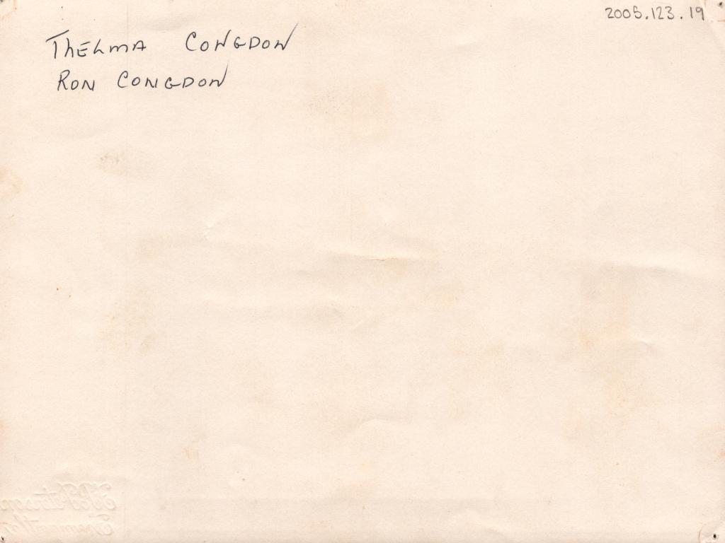 Reverse: Handwritten in black pen 'THELMA CONGDON', 'RON CONGDON'.
