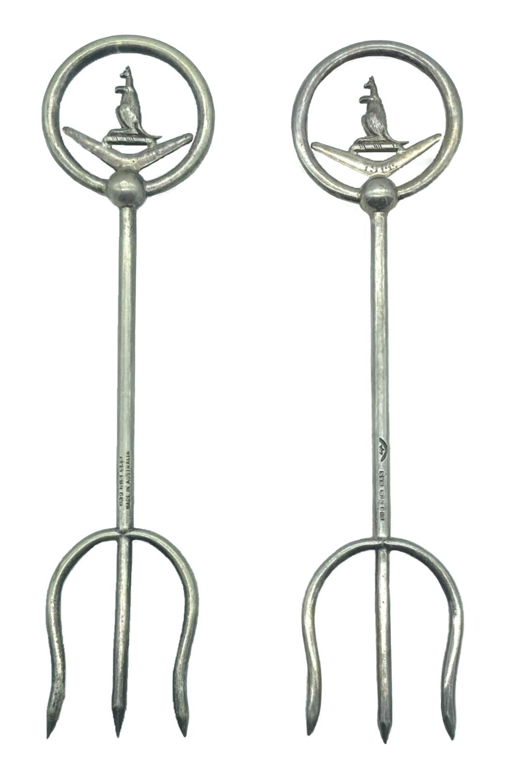 Silver plated trident bread forks with decorative tops - Kangaroo