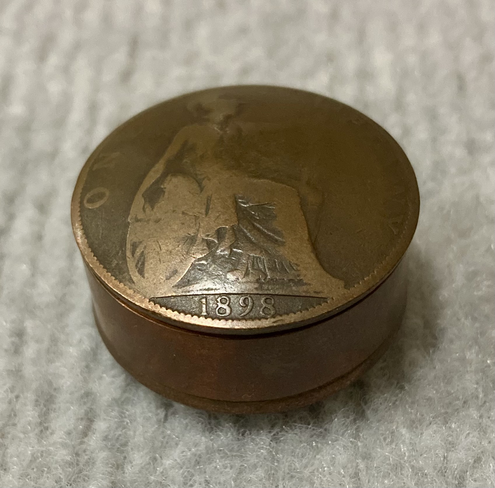 Victorian era circular snuff container made from coins