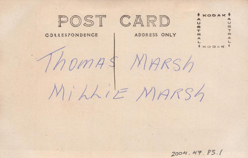 Reverse: Written in blue pen: 'THOMAS MARSH MILLIE MARSH'