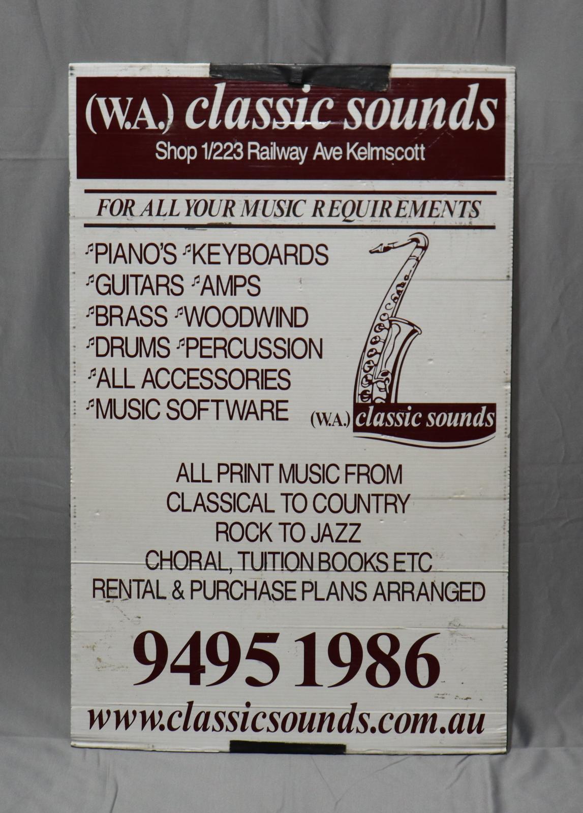 Classic Sounds was a music store located at 223 Railway Avenue in Kelmscott. The business was started in c1991 by Bernard School. in 2001 Morley John purchased the business and ran it until his retirement in 2023. The store not only sold musical instruments and associated equipment but also had studios for music lessons.