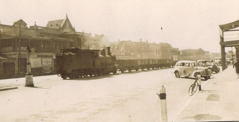 Train in main street of Port Pirie, 1943