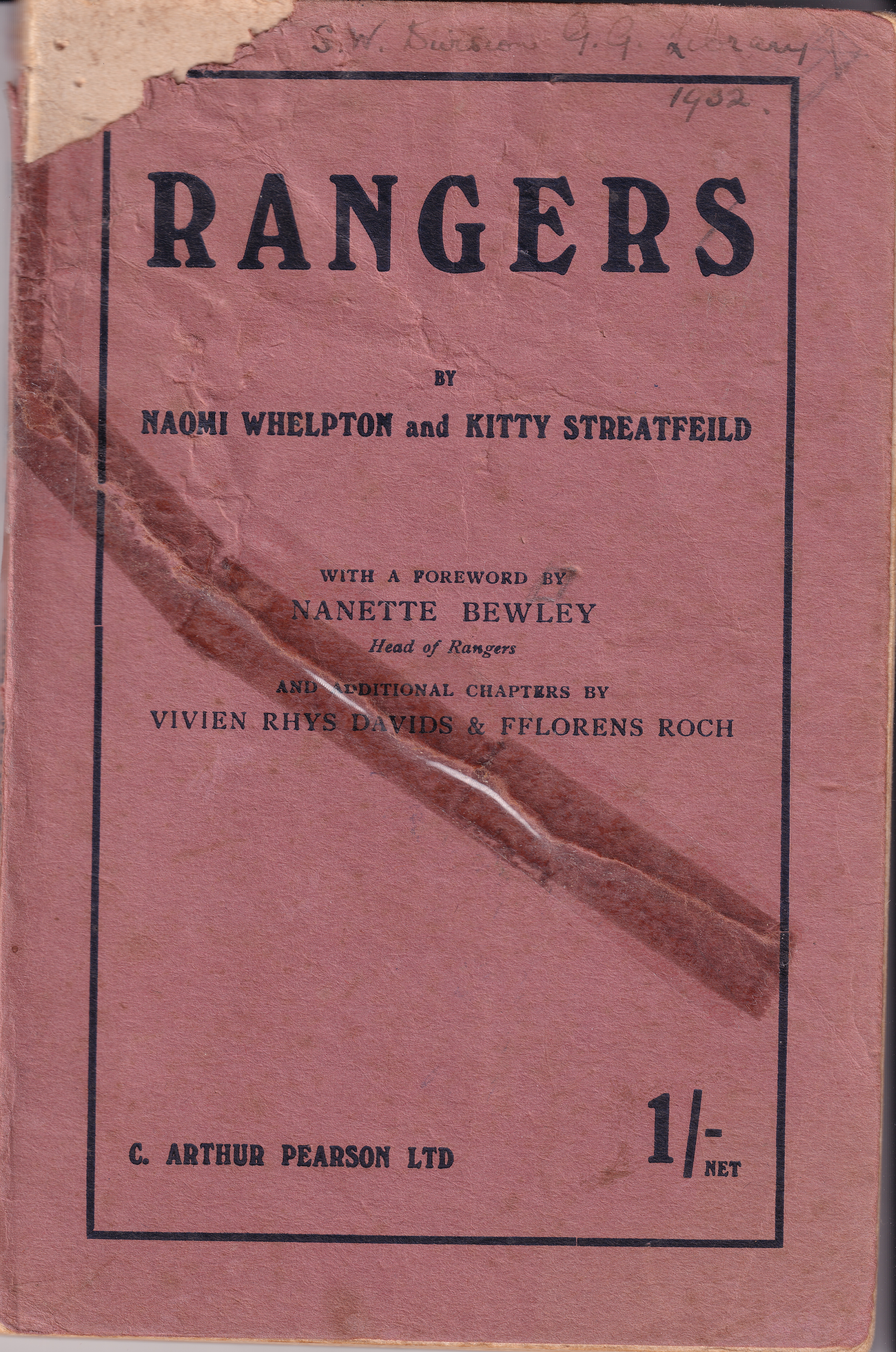 Front of book: "Rangers by Naomi Whelpton & Kitty Streatfield. With a foreword by Nanette Bewley, Head of Rangers, and additional chapters by Vivien Rhys Davids & Fflorens Roch"