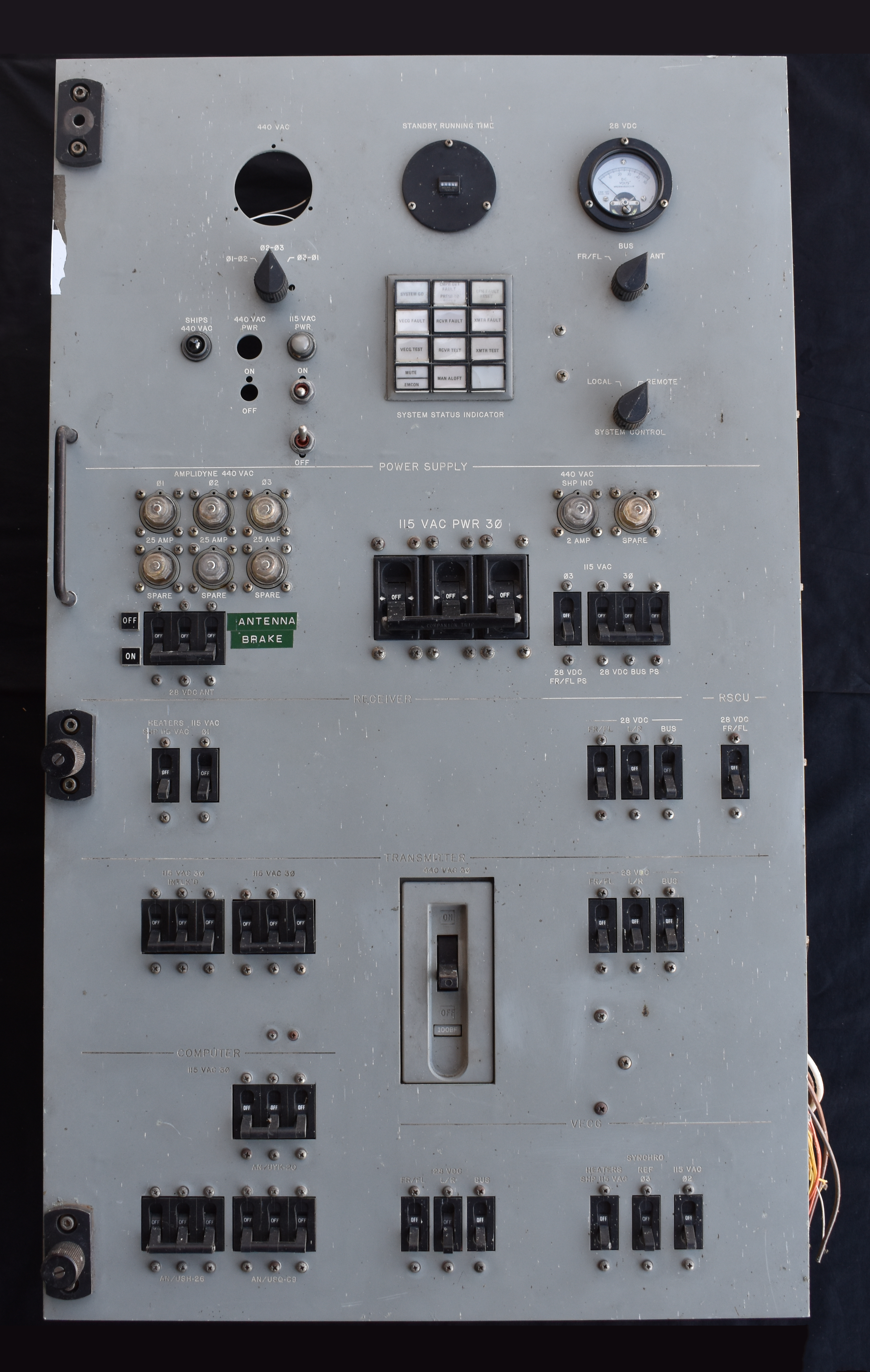 On front of panel are main sections labeled "POWER SUPPLY / RECEIVER / RSCU / TRANSMITTER / COMPUTER / VEGG"