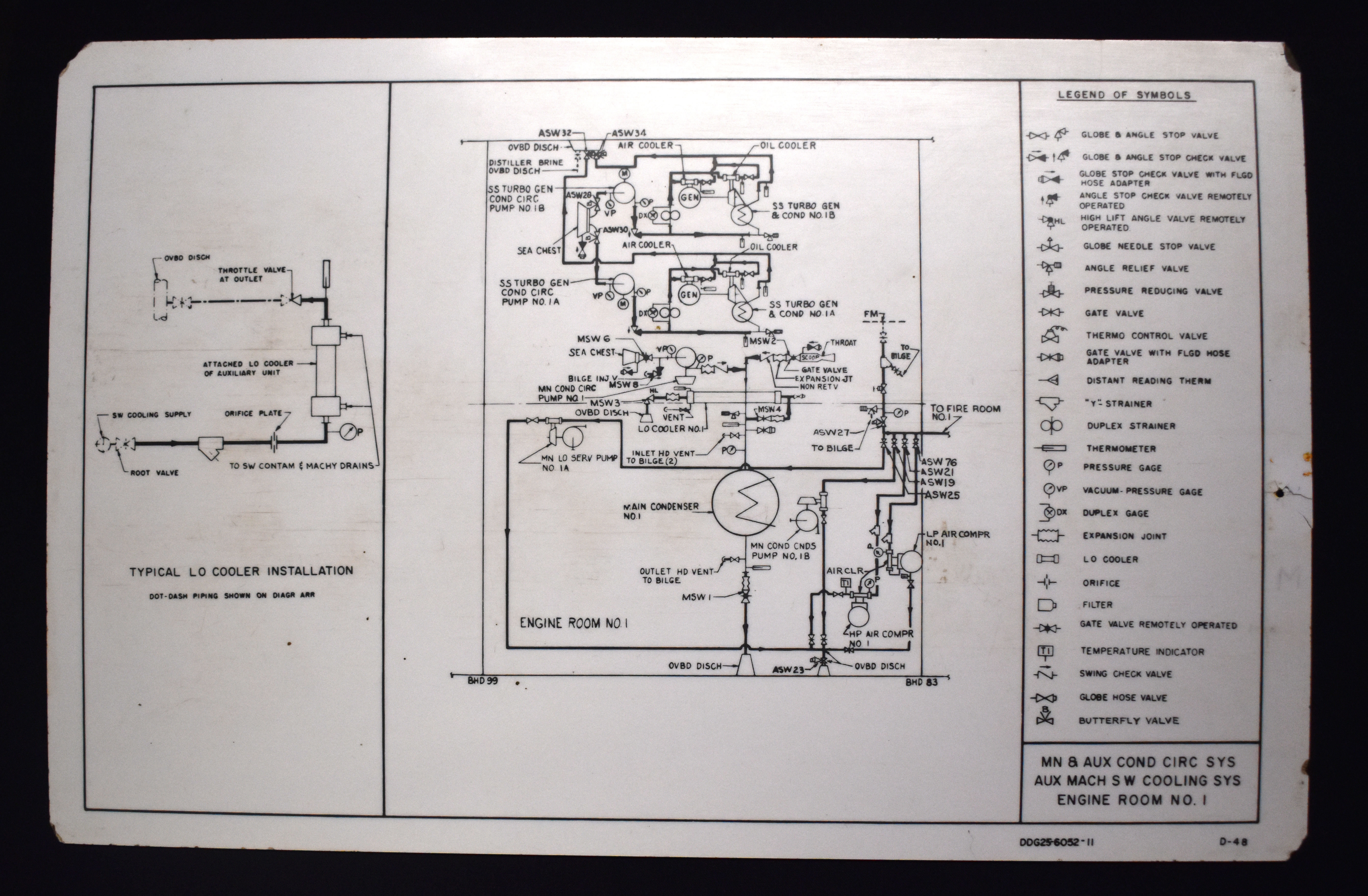 Heading in main legend reads "MN & AUX COND CIRC SYS / AUX MACH S W COOLING SYS / ENGINE ROOM NO. 1".