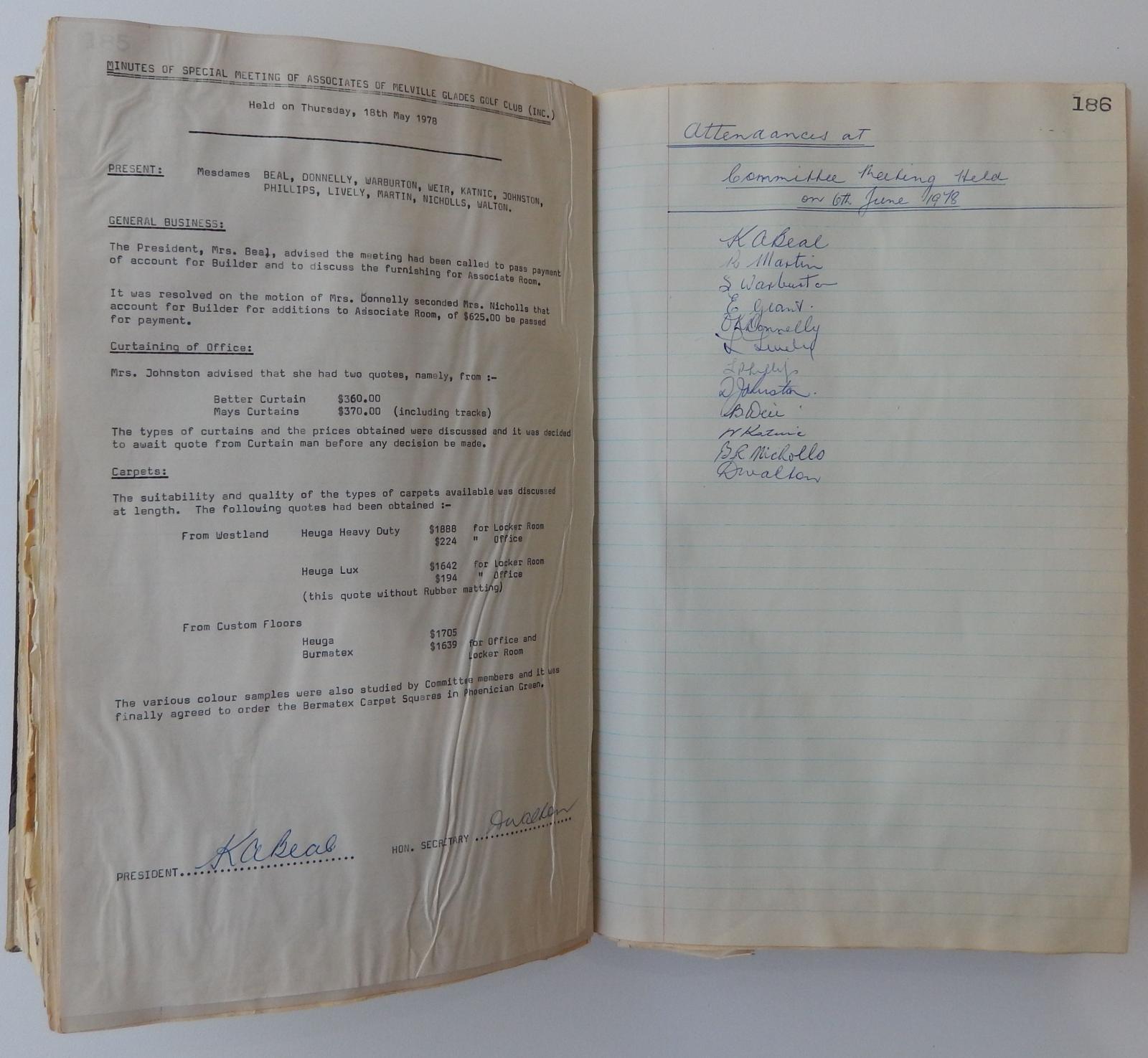 LADIES' COMMITTEE MINUTE BOOK 1973-1982