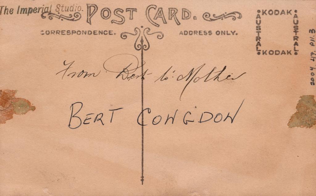Reverse: Written in black pen 'From Bert to Mother' and 'BERT CONGDON'