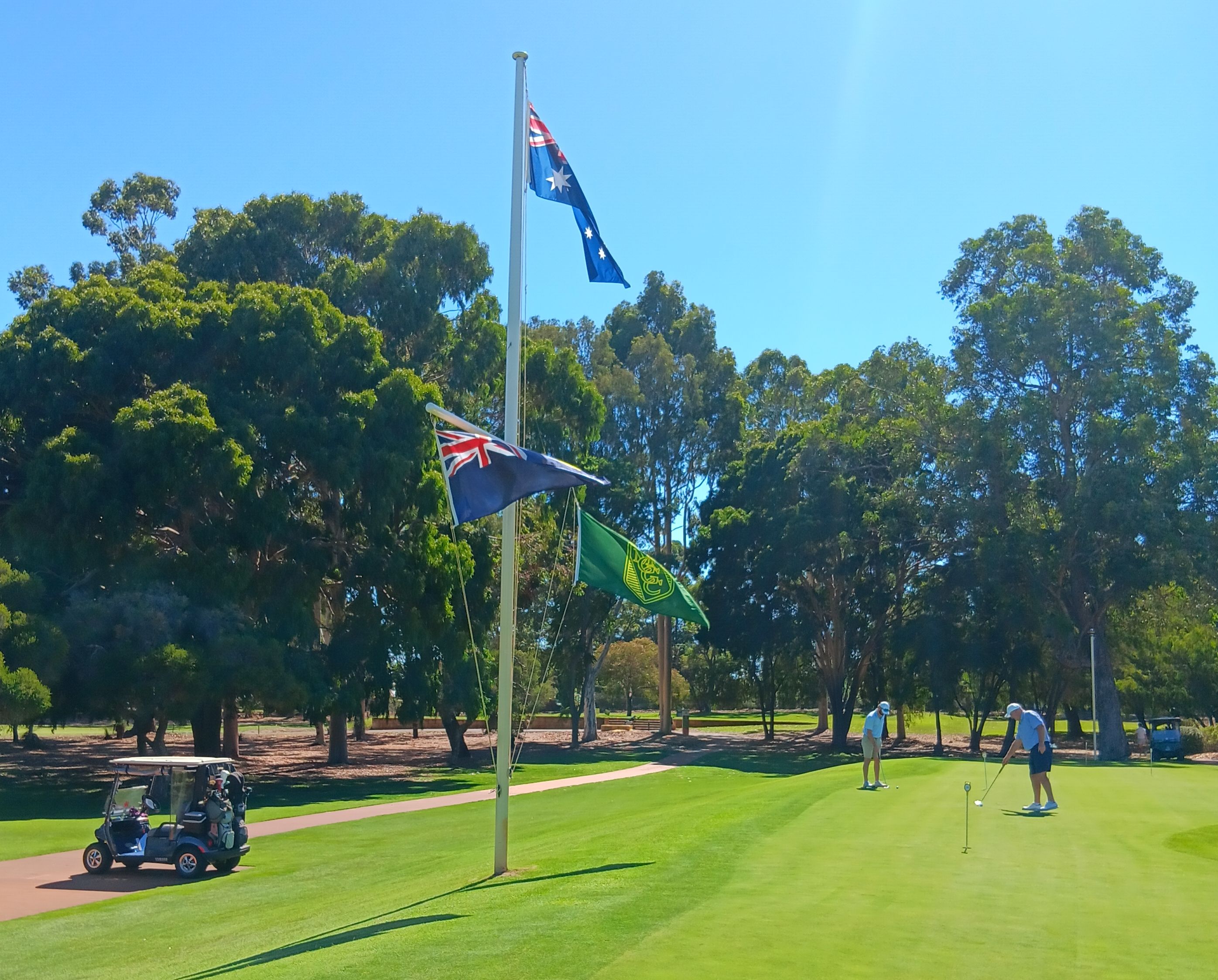 It is raised daily along with the Australian and Western Australian flags on the flagpole outside the clubhouse lounge beside the practice putting green.
