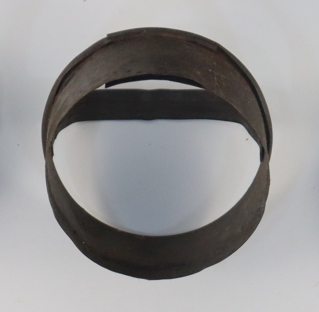c. 1930A large circular metal cutter with an overlapping seam and a handle.