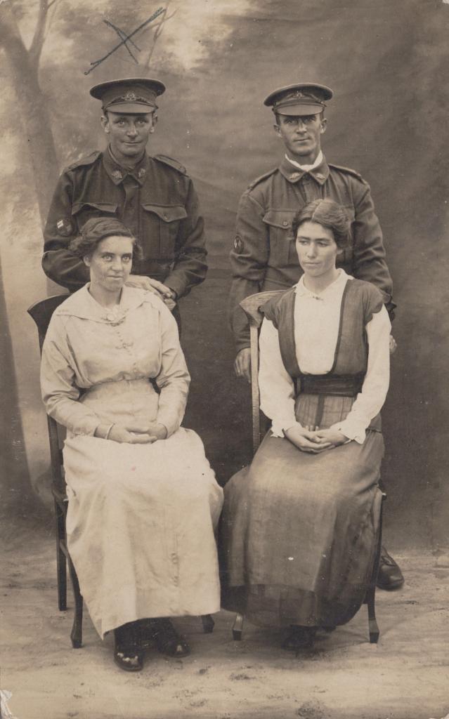 POSTCARD: BERT CONGDON WITH THREE UNKNOWN PEOPLE, FROM ALBUM 1, THELMA GREEN COLLECTION