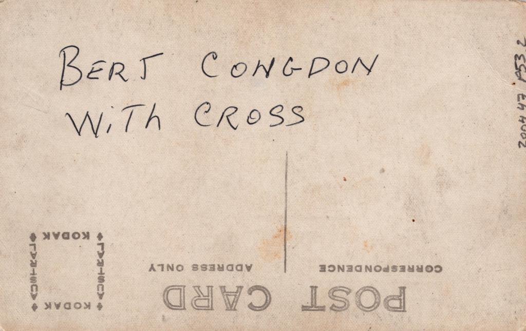 Reverse: Written in black pen 'BERT CONGDON WITH CROSS'