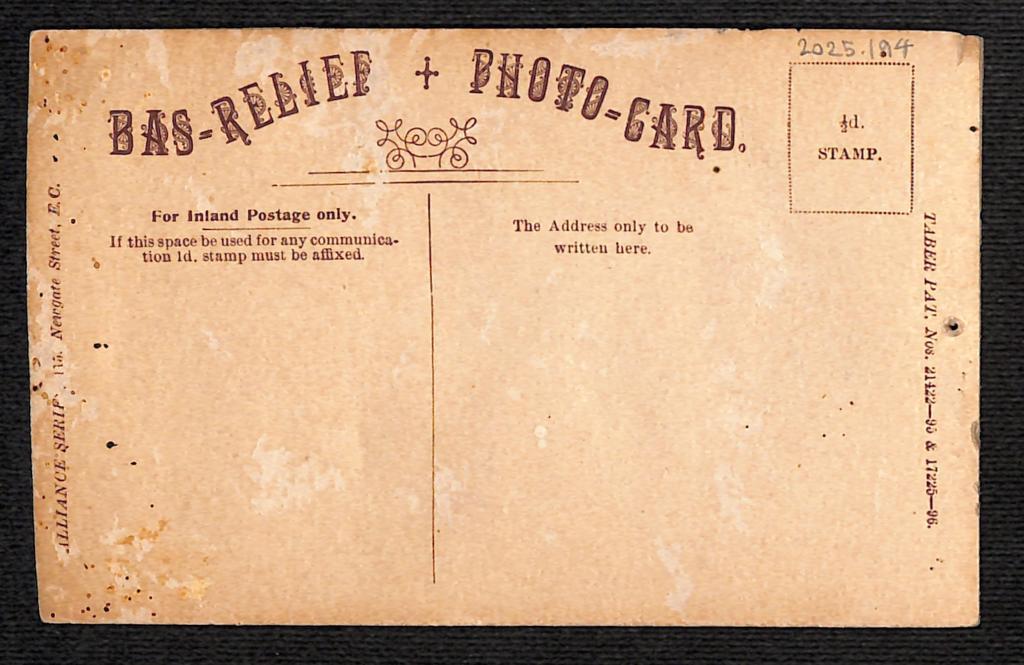On the reverse at the top in curved decorative font reads: 'BAS-RELIEF + PHOTO-CARD'.