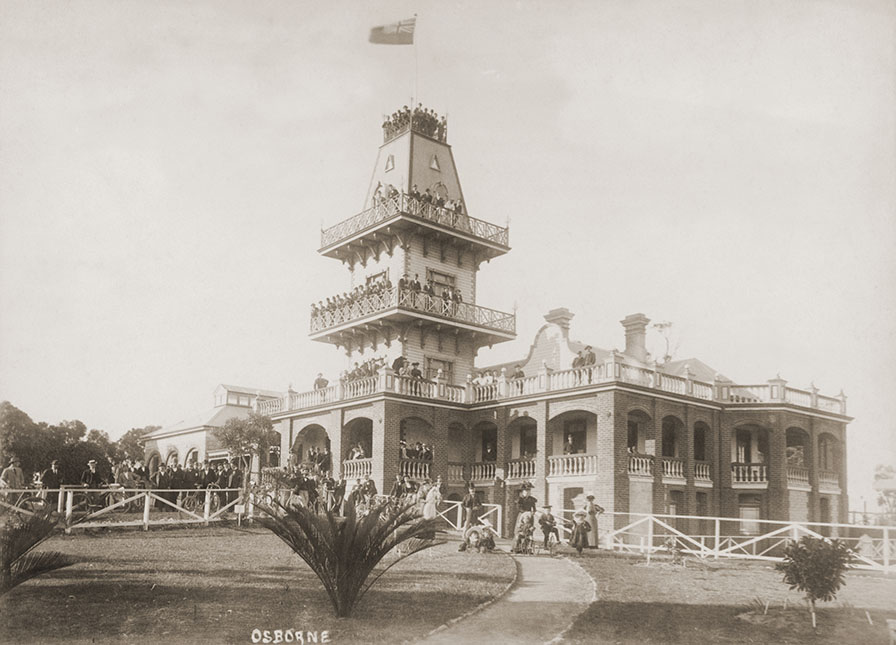 In 1894, James Grave began building the Osborne Hotel on 2 acre property on a cliff top in Claremont. The hotel had views of the Swan River and Indian Ocean and was regarded as Perth's finest resort hotel.