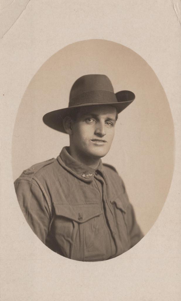 c. 1913Postcard showing an unknown man in military uniform wearing a Rising Sun Australian Army Badge on his collar.