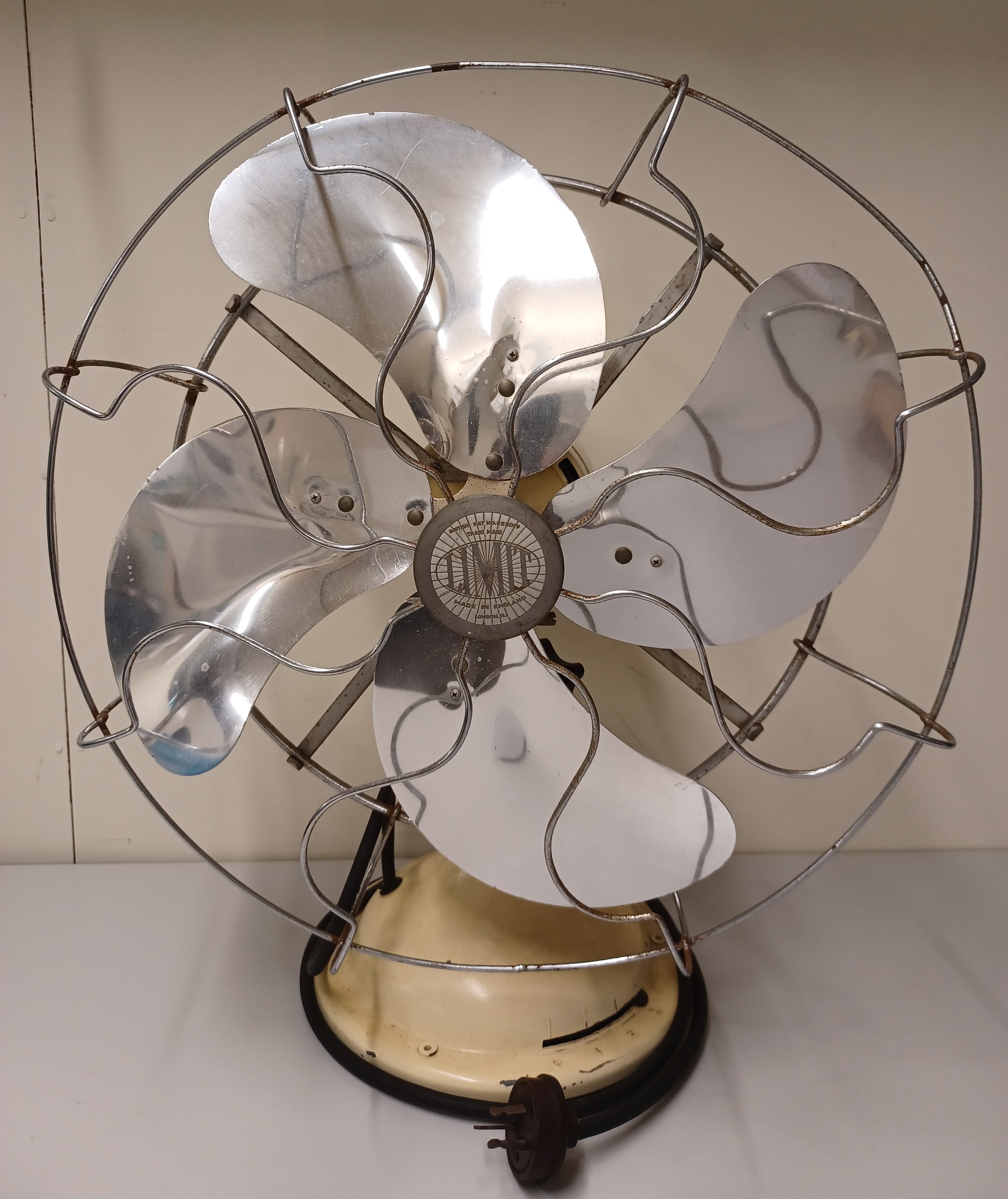 On fan: "Limit. Made in England. London. British Pat No. 622079. Trade Mark"