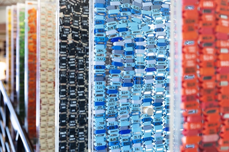Small coloured tags with short alphanumeric ids printed on them.