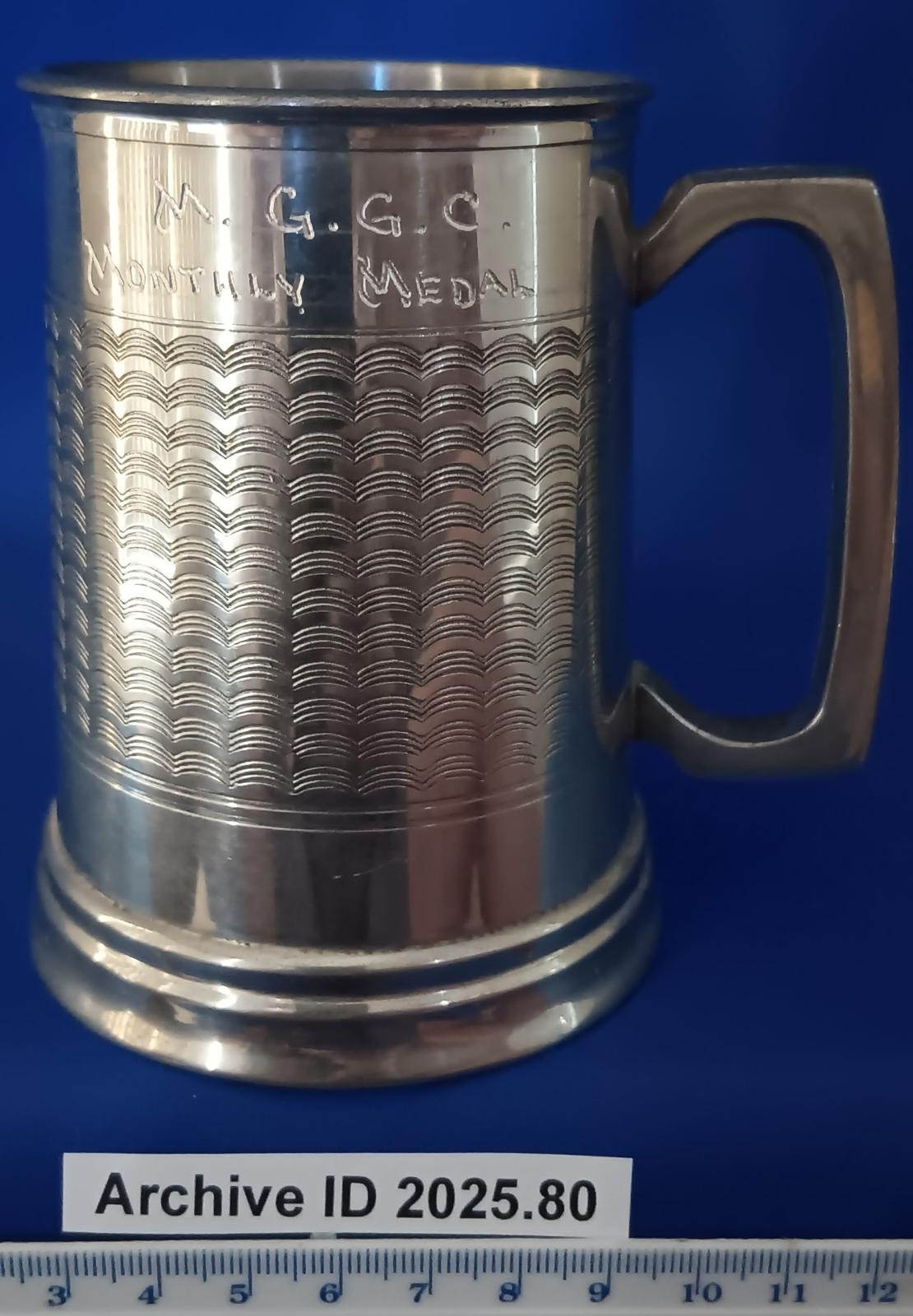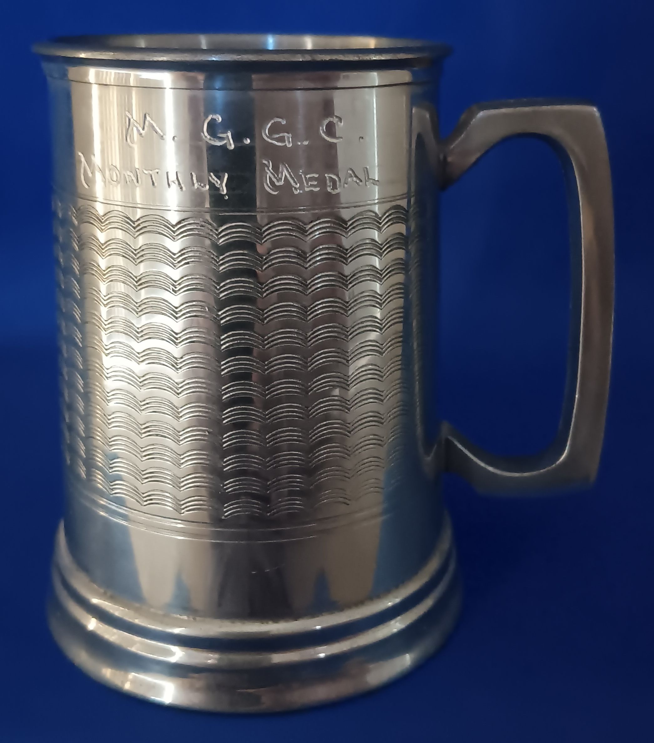 Although these events were then known as the Monthly Medal, the prize awarded was this pewter mug for an unknown period. By presenting the mug at the bar the mug holder was entitled to free beer in the period up to the following month’s Monthly Medal. Frank recalls that he did not take up the offer.