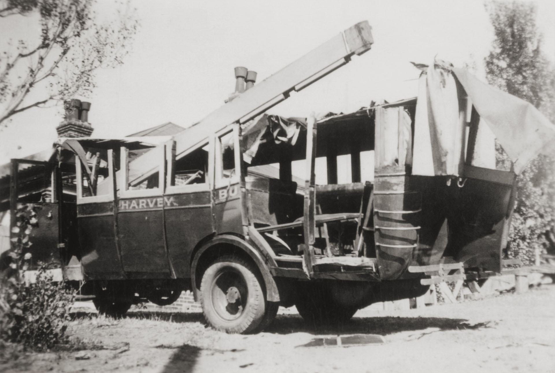 The Harvey-Bunbury school bus was travelling from Bunbury in the direction of Harvey when it hit a post near Waterloo. The bus was travelling between 25-30 mph when a truck, travelling along a side road, turned onto the main road in front of the bus. The bus was forced off the road down an eighteen inch embankment, where it continued for some forty yards, before striking a telegraph pole which knocked the back and side out of the bus.