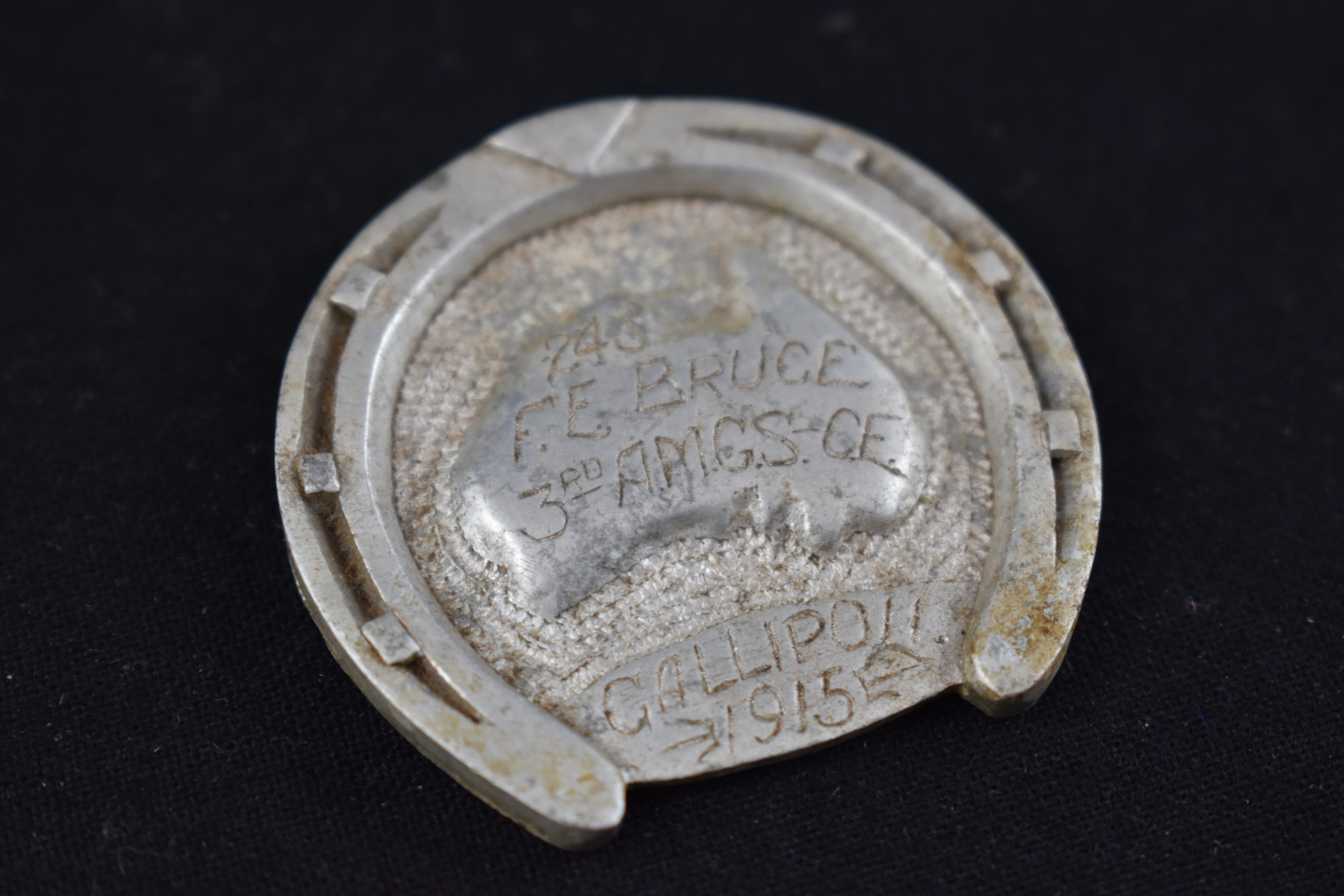 “243 / F. E. BRUCE / 3RD A.M.C.S. CE / Gallipoli / 1915”