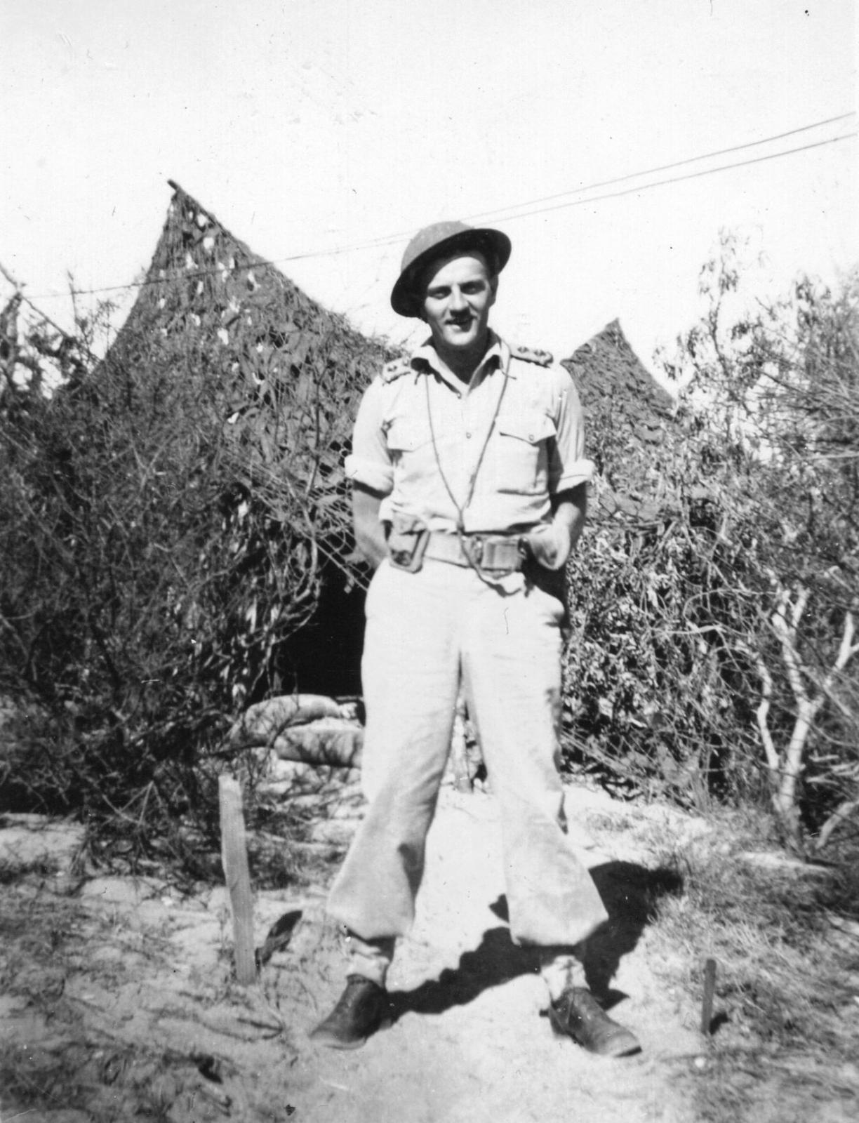 1943Unidentified officer standing in front of camouflage nets