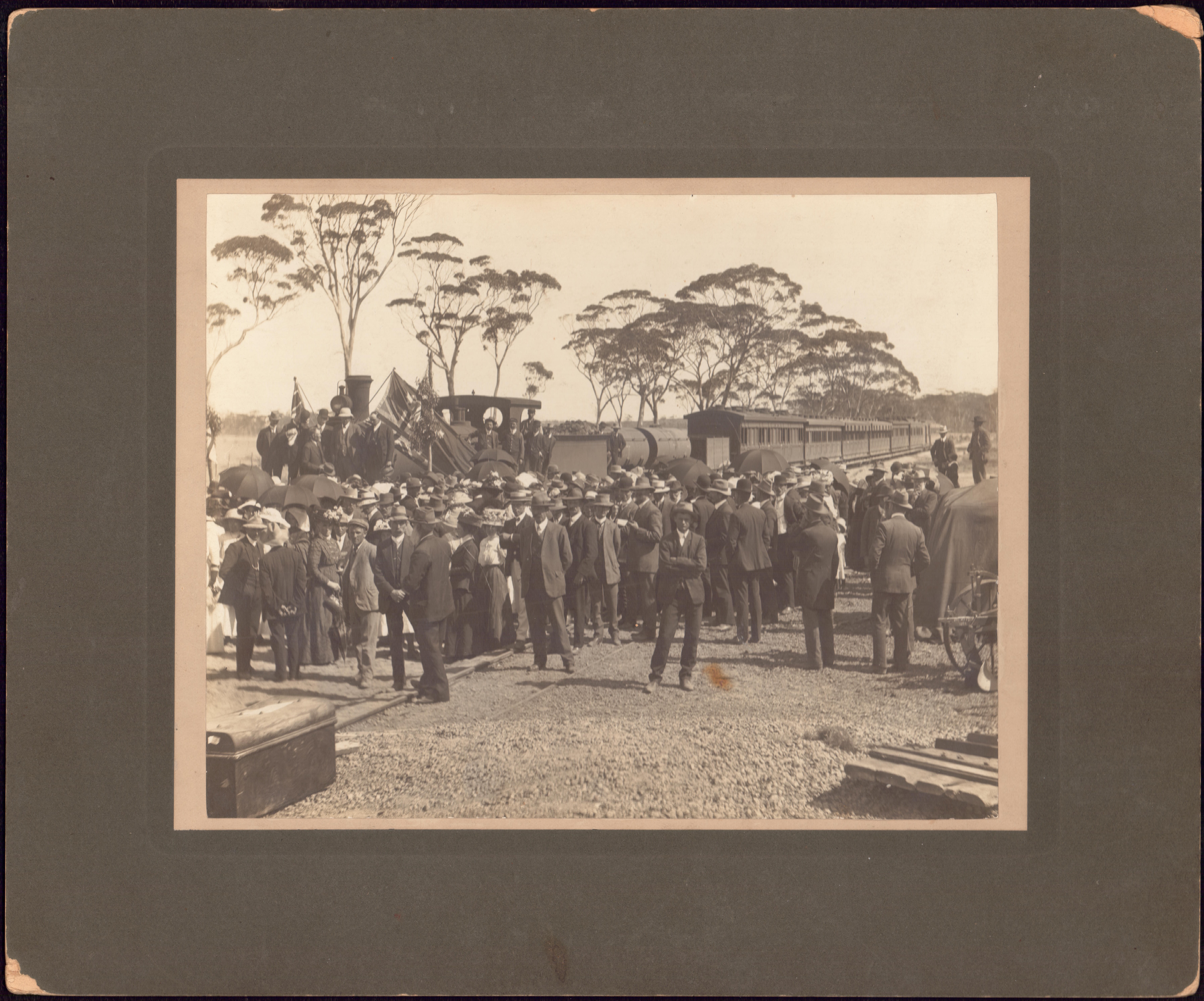 On the back of the photograph handwritten in black ink is "Opening of Railway Line to Nyabing 1912".