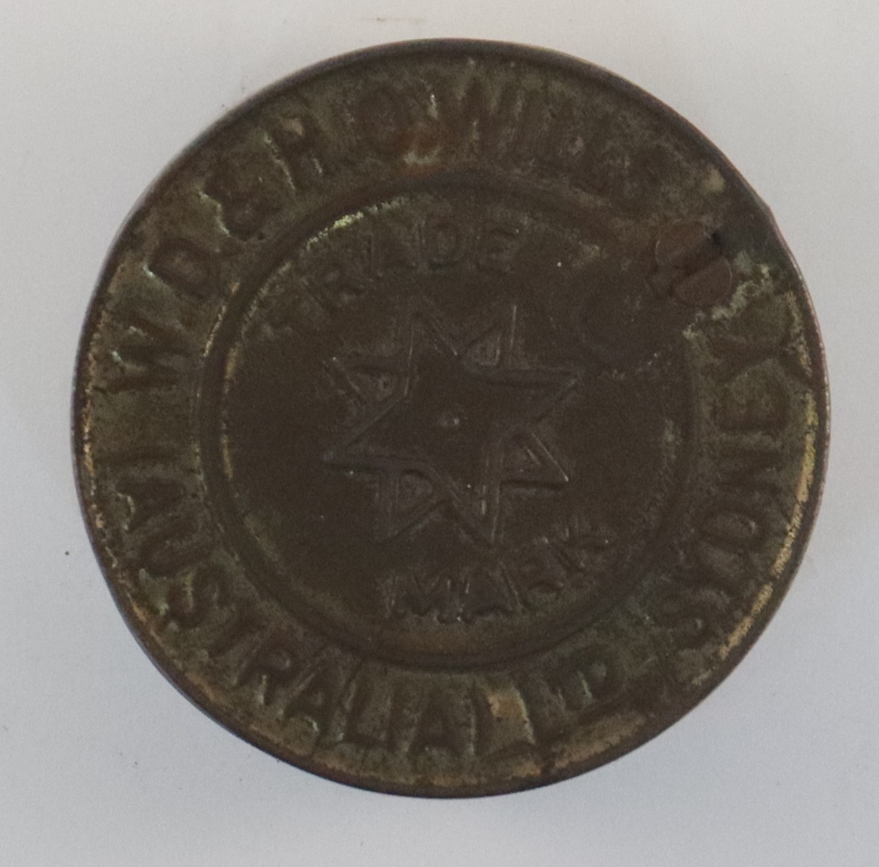 Embossed around the top of the lid is "W.D. & H.O. WILLS" and around the bottom is "AUSTRALIA Ltd SYDNEY"