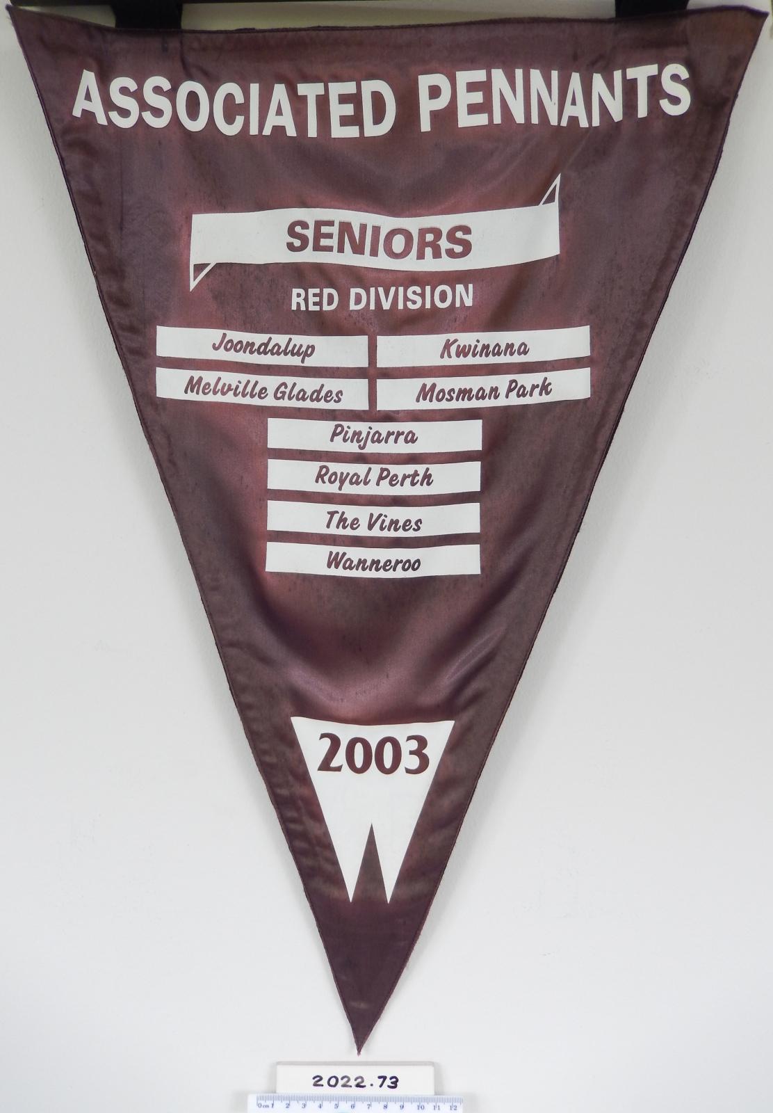 The pennant recognises MGGC's win in the Senior Men's Associated Golf Clubs' Senior Men 4BBB Red Division 2003.