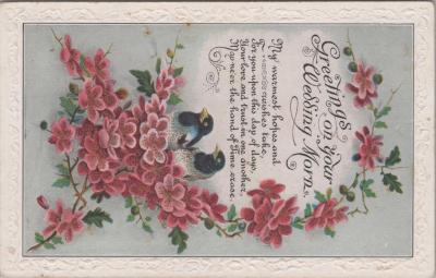 - POSTCARD: 'GREETINGS ON YOU WEDDING MORN', JIM AND LILLIAN DENNIS ANNIVERSARY COLLECTION