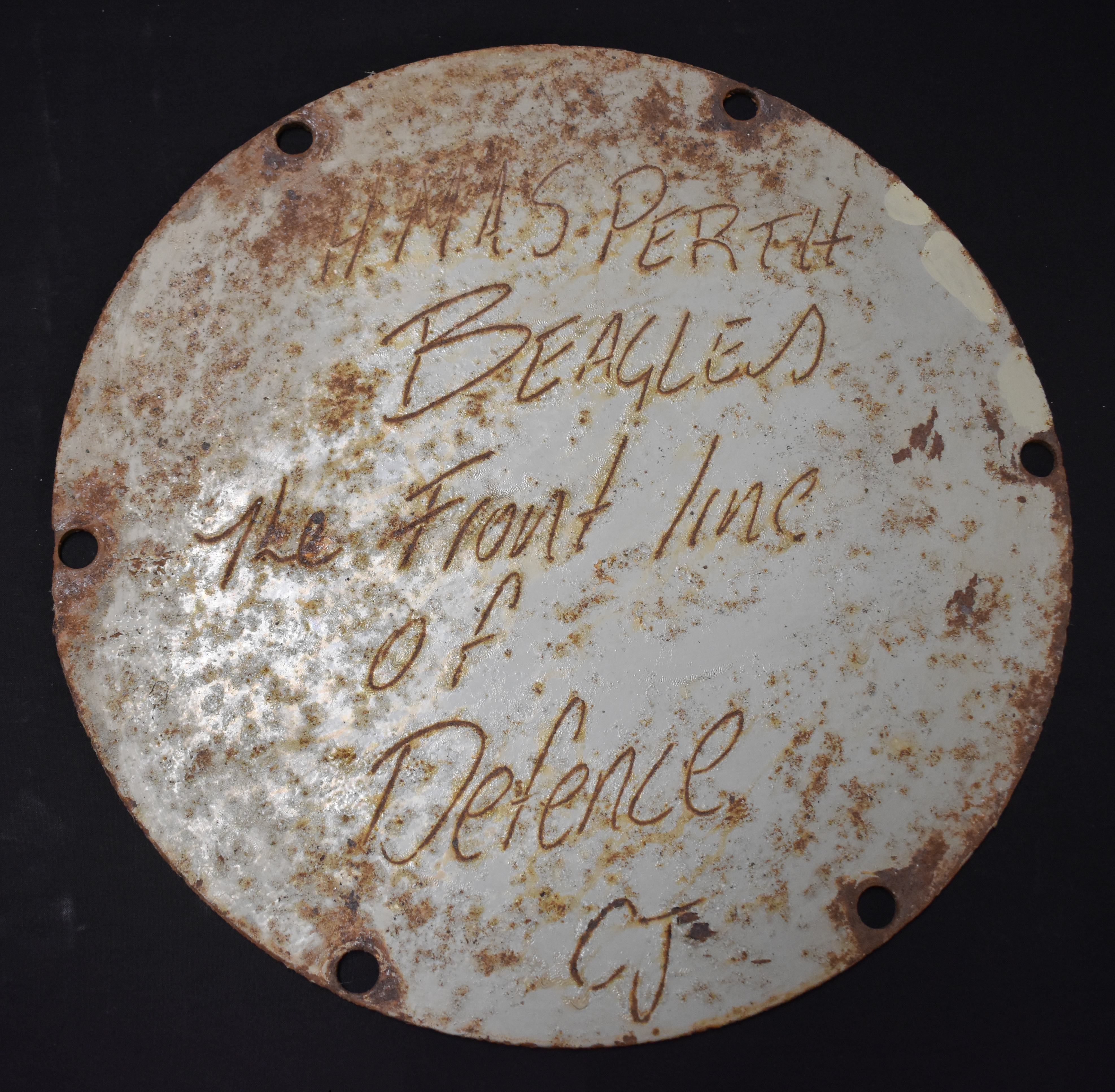 Engraved on front "HMAS PERTH / BEAGLES / The Front line / of / Defence / CJ"