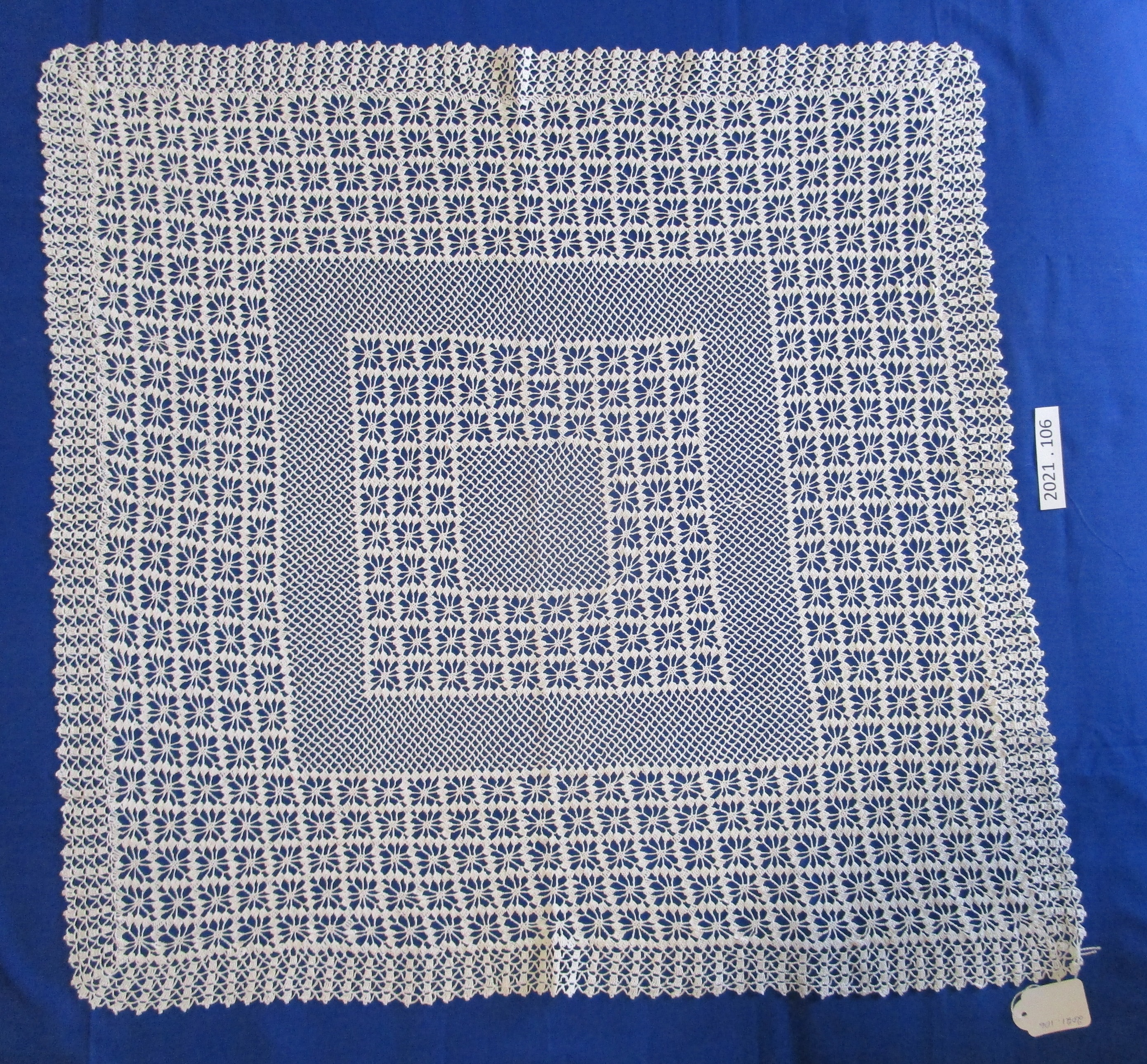 This crochet design is reminiscent of the drawn thread design in item # 2015.49 in the Collection -