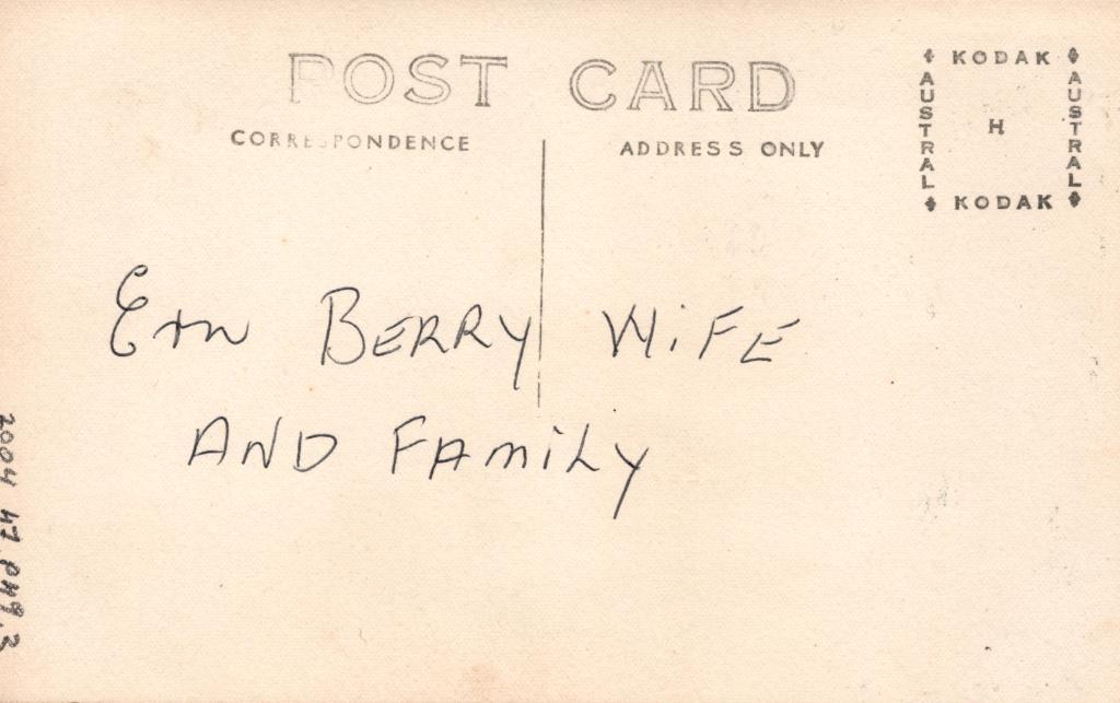 Reverse: Written in black pen 'ERN BERRY WIFE AND FAMILY'