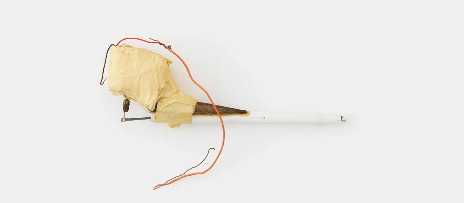 This tattooing apparatus was left on site when the Prison closed in 1991, either by a prisoner or after having been confiscated by Prison Officers.
