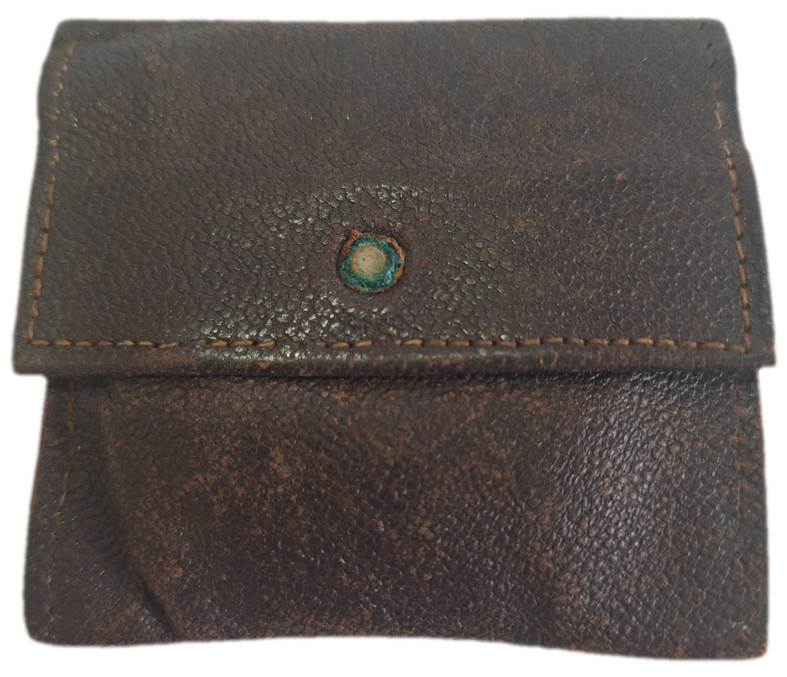 Small empty leather pouch. This pouch was used to store the Traditional Catholic rosary beads (Identification Number 25-199.1)