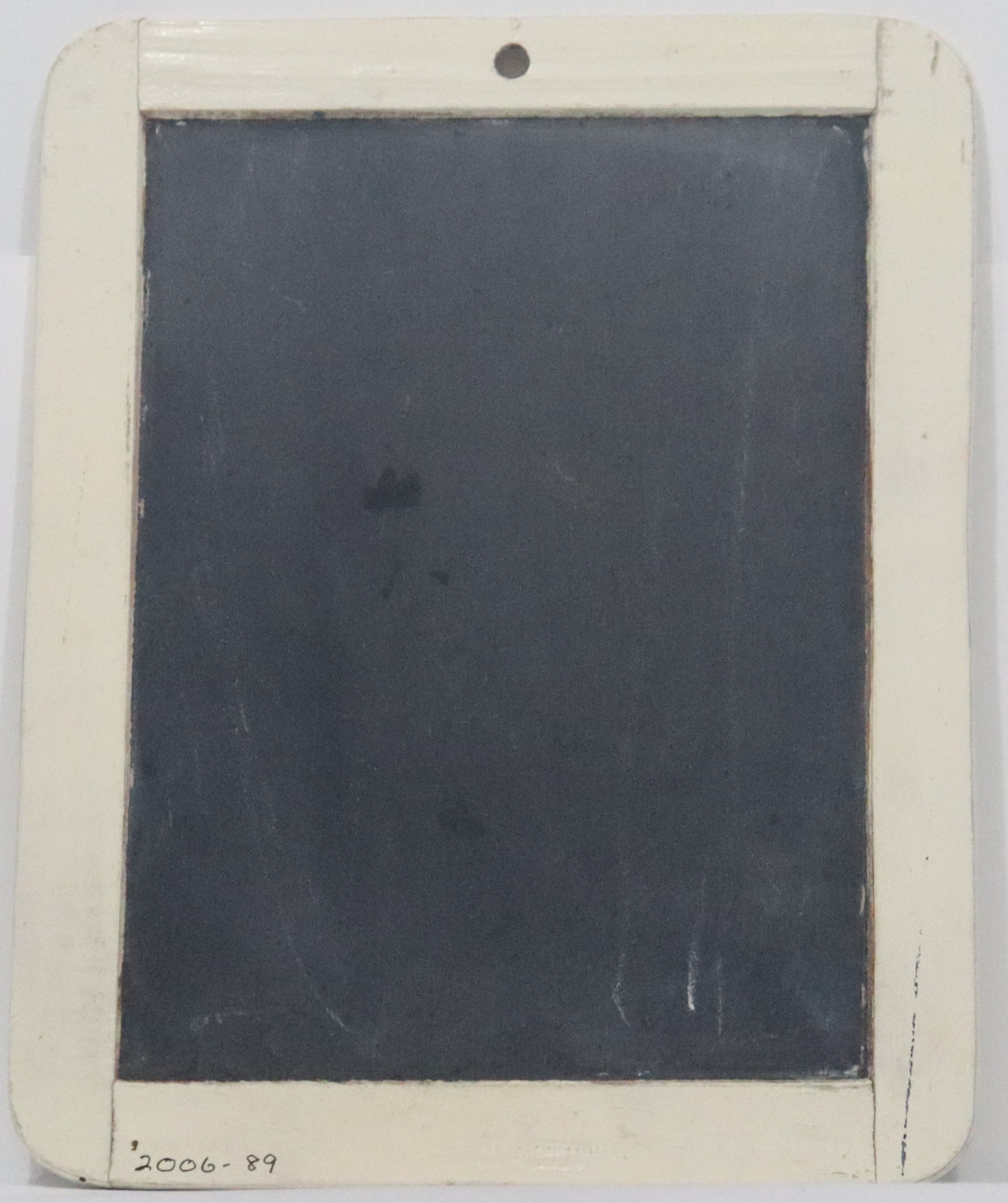 Slate in a painted white wooden frame.