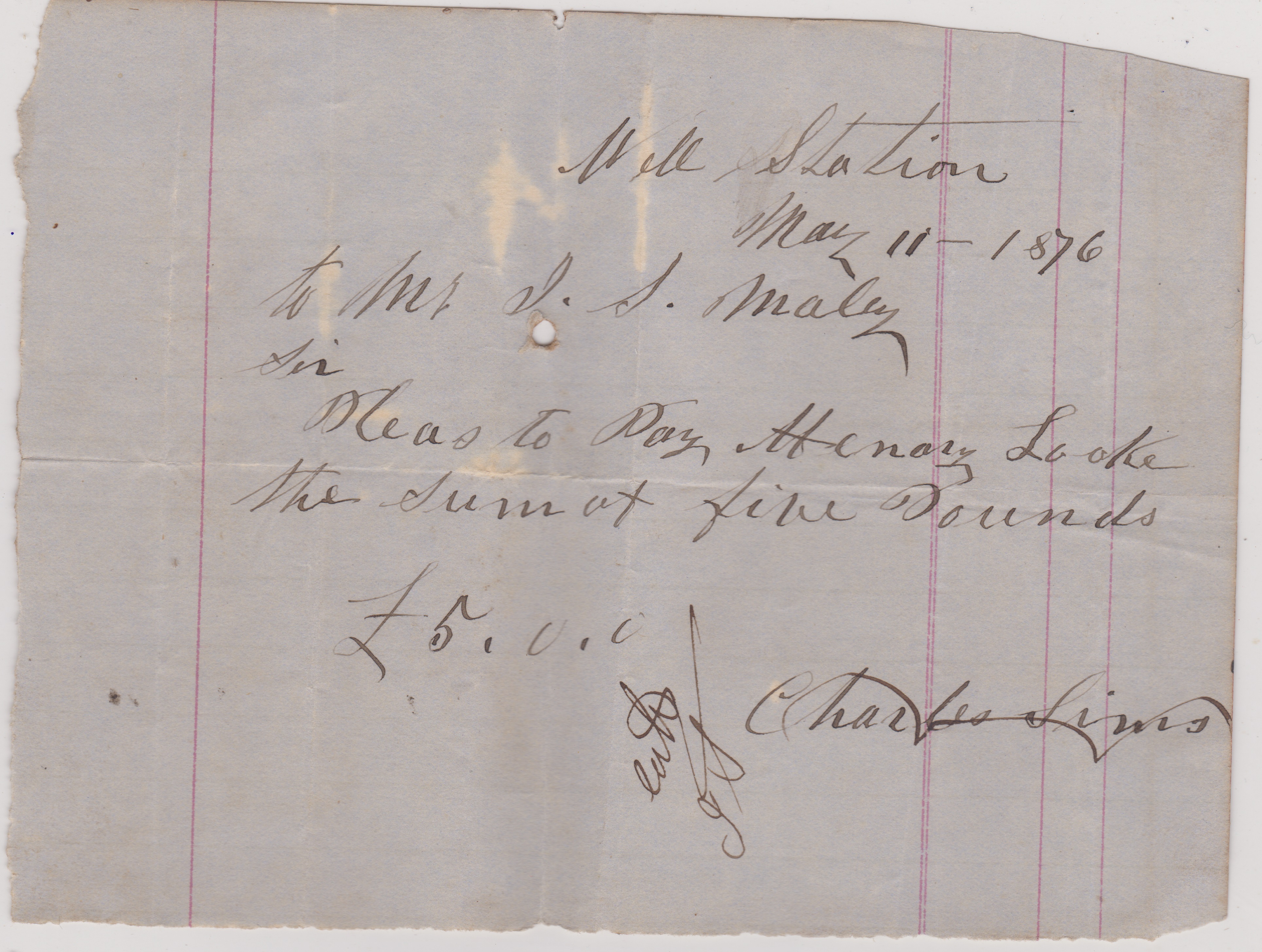 This is the only promissory note made out to Henry Look in the Maley Mill & Store Archives.