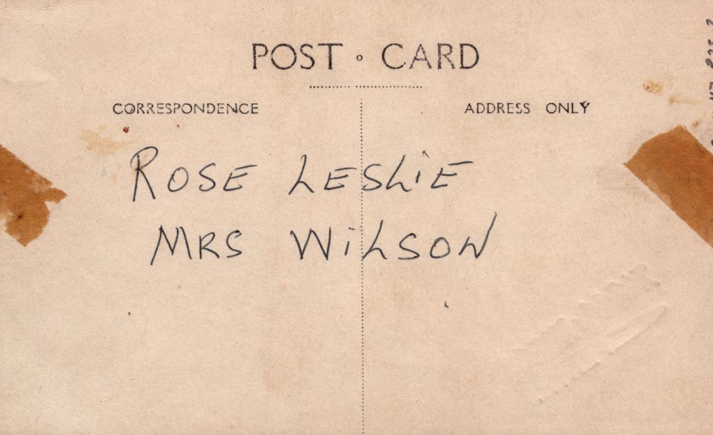 Reverse: Written in black pen 'ROSE LESLIE MRS WILSON'