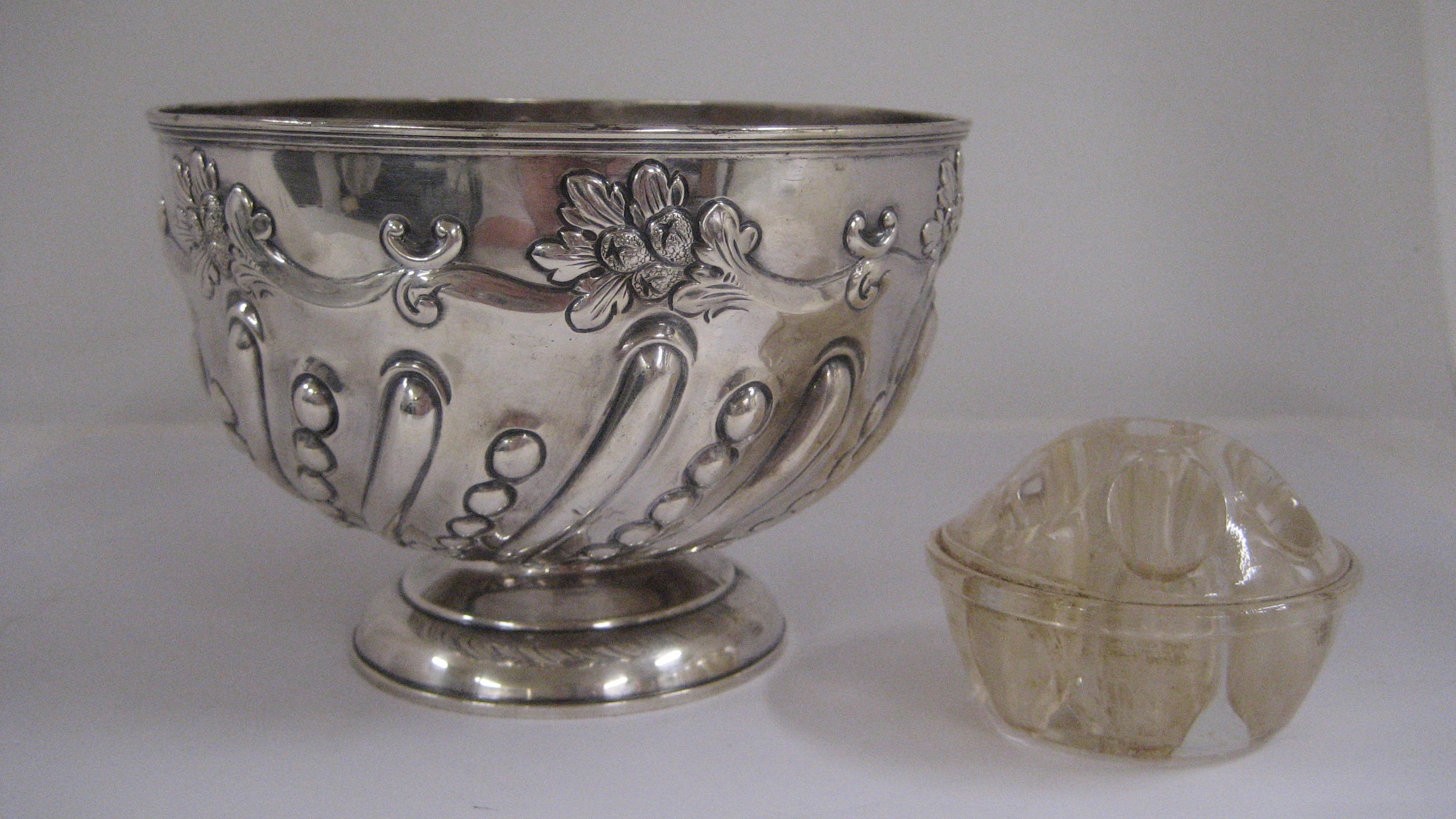 Sterling Silver Rose Bowl with Glass Flower Holder