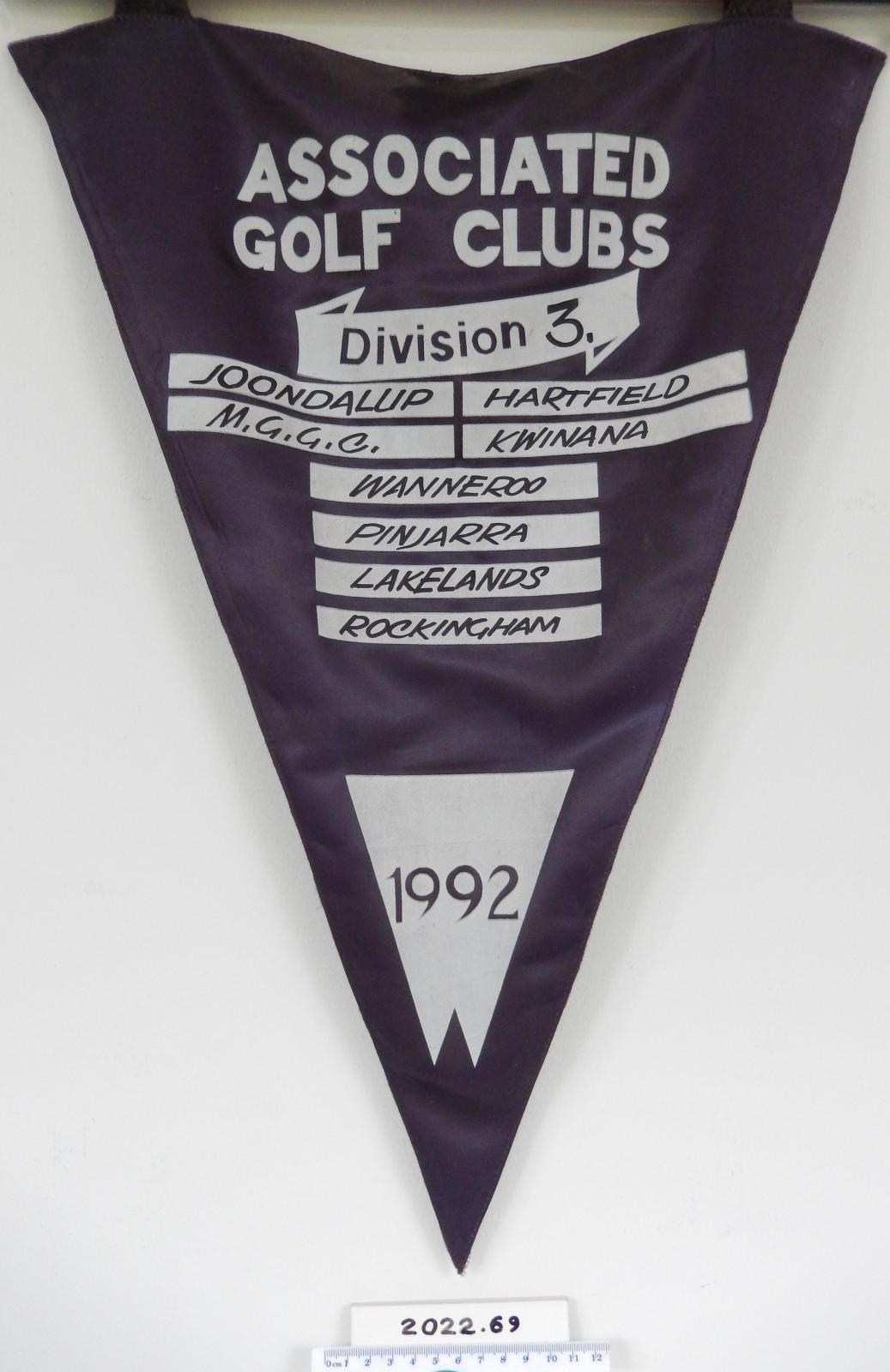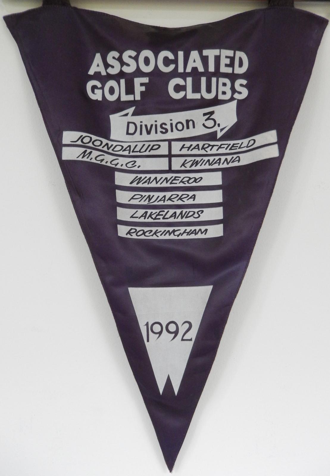 The pennant recognises MGGC's win in the Men's Associated Golf Clubs' 3rd Division in 1992.