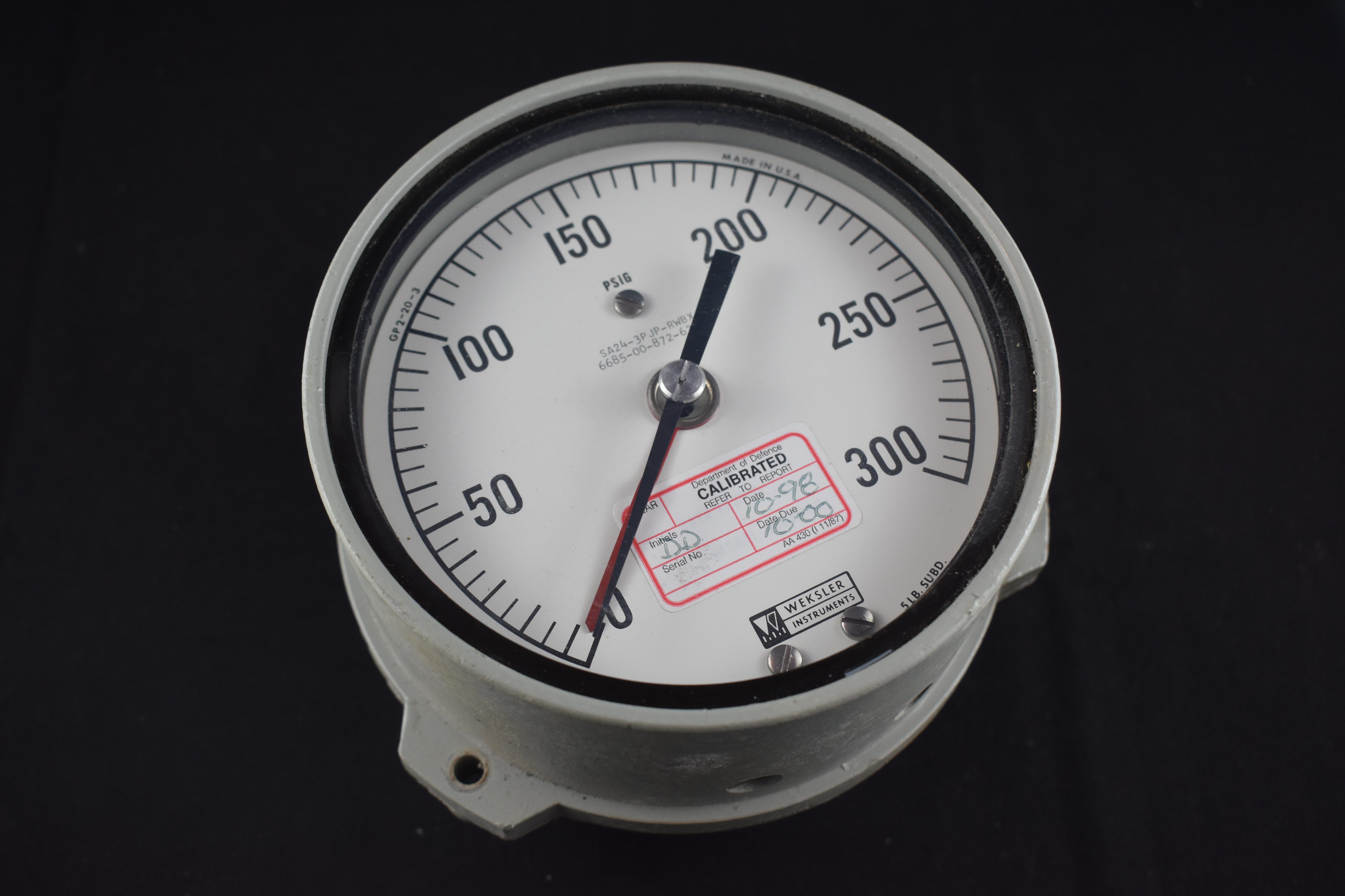 On front "WEKSLER INSTRUMENTS / GP2-20-3 / MADE IN U.S.A. / 5 LB. SUBD." with sticker "QAR / DEPARTMENT OF DEFENCE / CALIBRATED / REFER TO REPORT / Initials DD / Date 10-98 / Serial No. / Date Due 10-00 / AA 430 (I 11/87)".