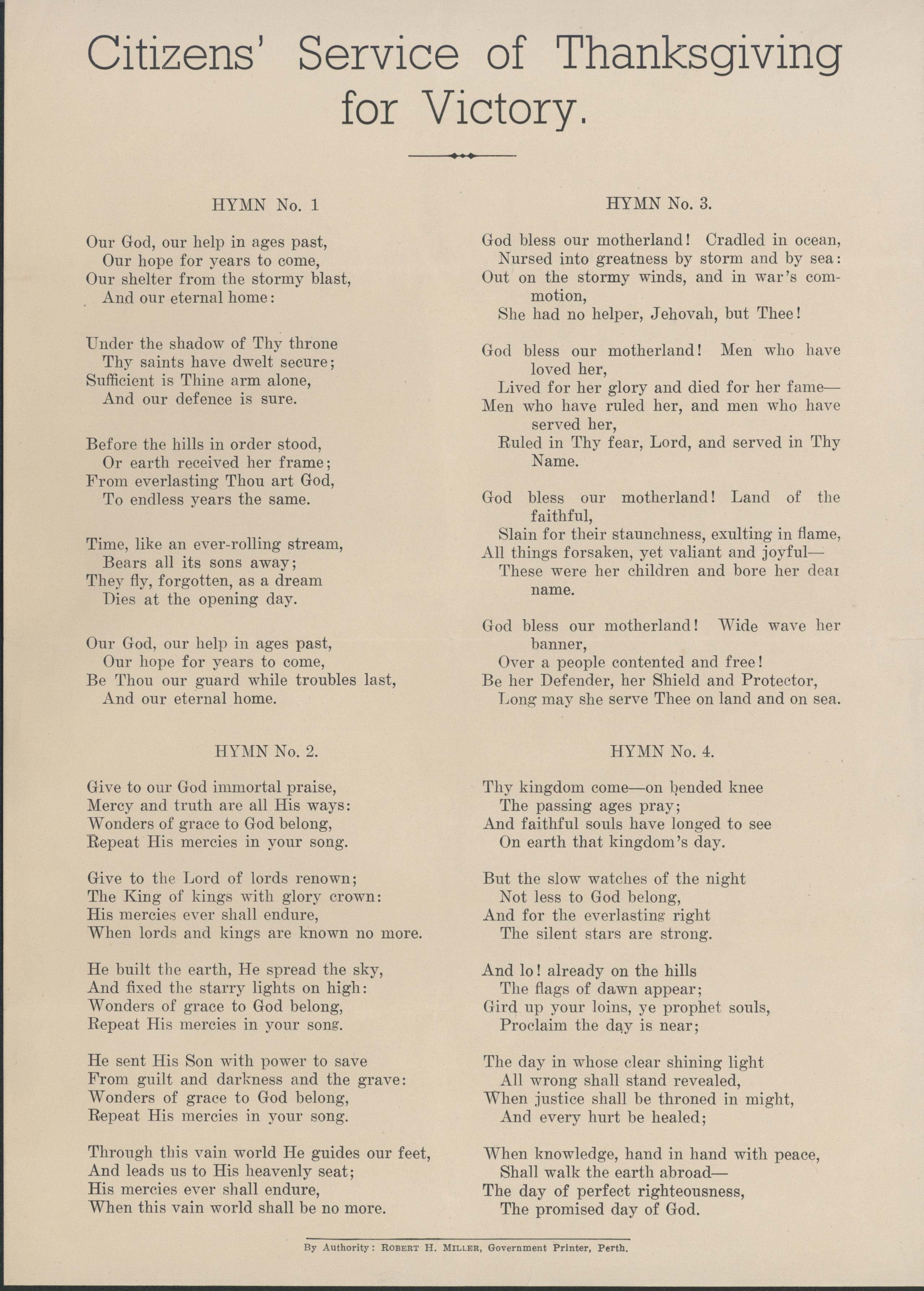 Citizens' Service of Thanksgiving for Victory hymn sheet, 1945.