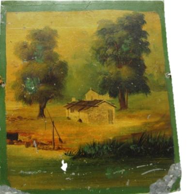 (b) Assortment of smoking paraphernalia found in the ash tray of the barber chair (part a). The assortment includes: two small used filtered cigarette butts, the remnants of five 'rollies' (rolled cigarettes), three used wooden matchsticks and some loose tobacco.